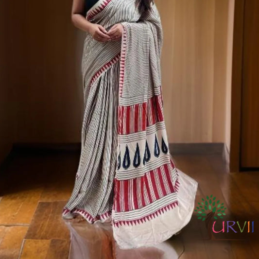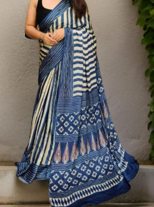 Ajrakh Printed Modal Silk (Striped)