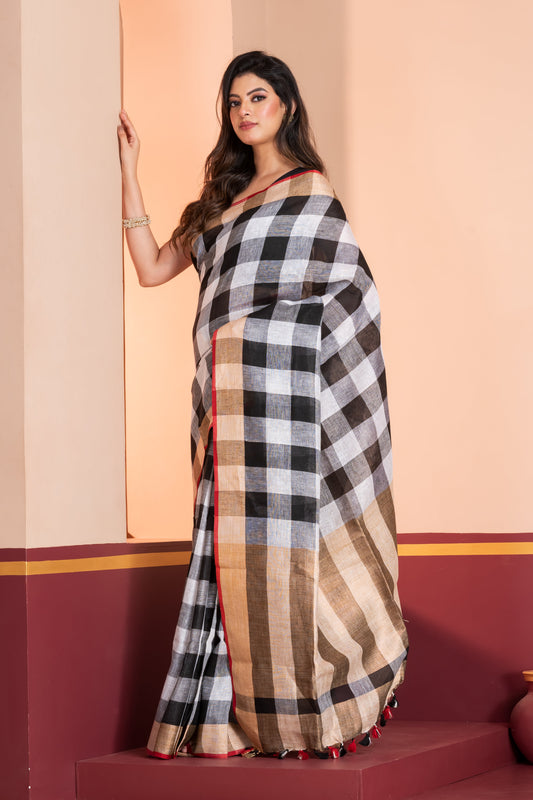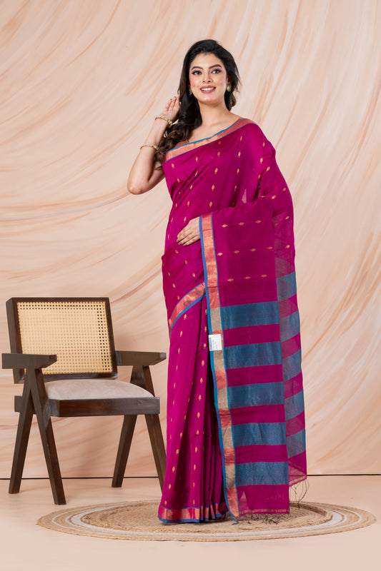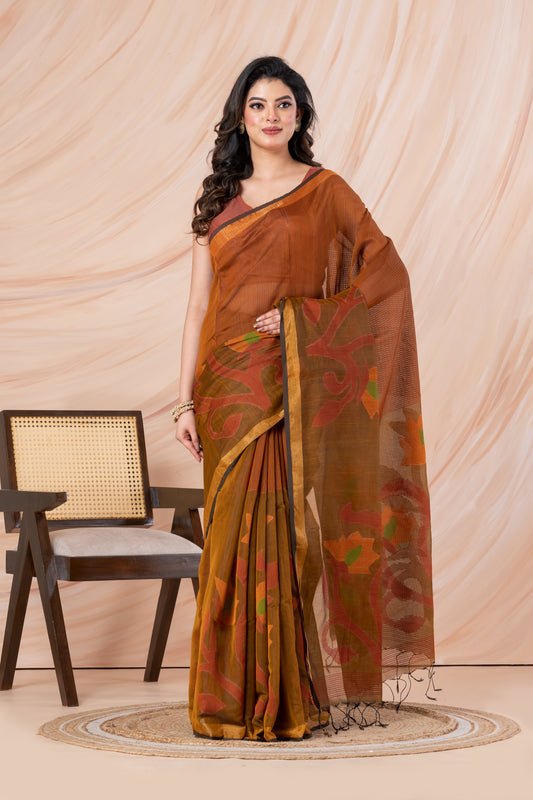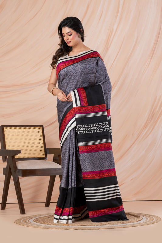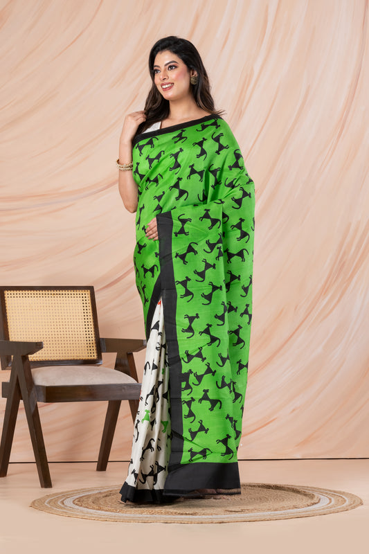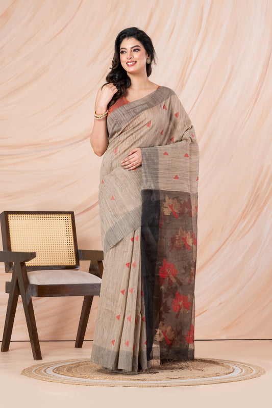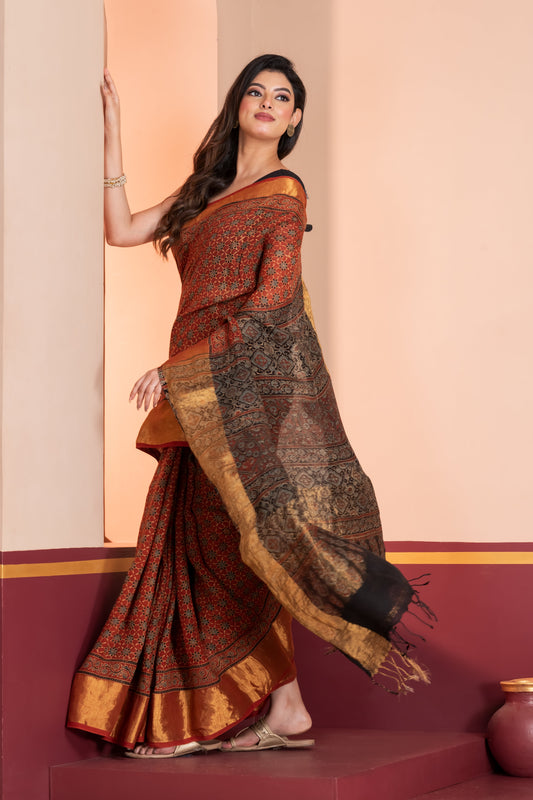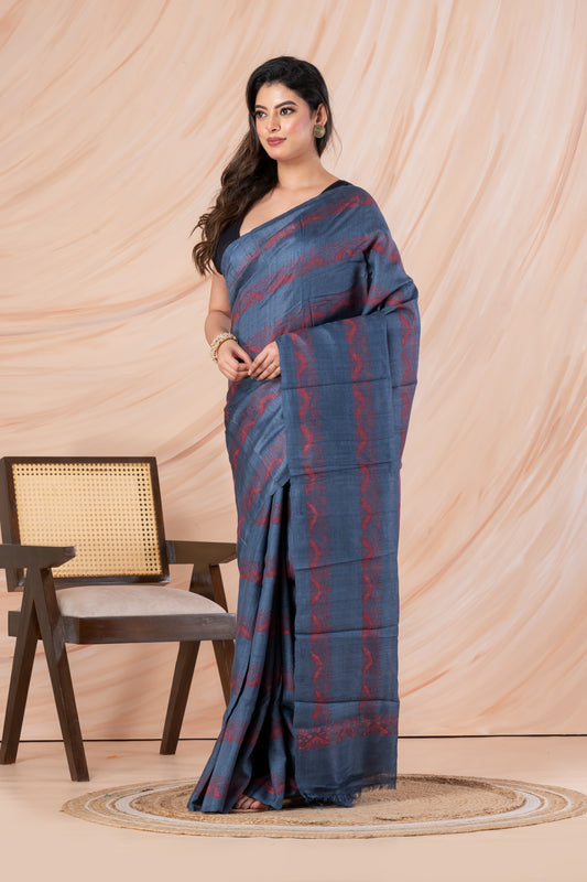 Pure Zari Tussar Printed Saree - Ganga Jamuna Border