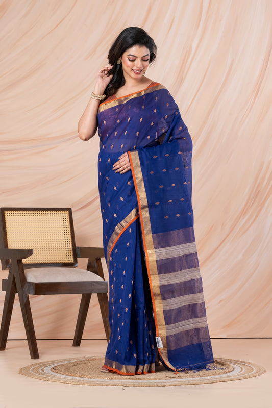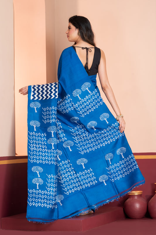 Royal blue 3ply silk. Paired with a plain blue blouse piece for a graceful finish.