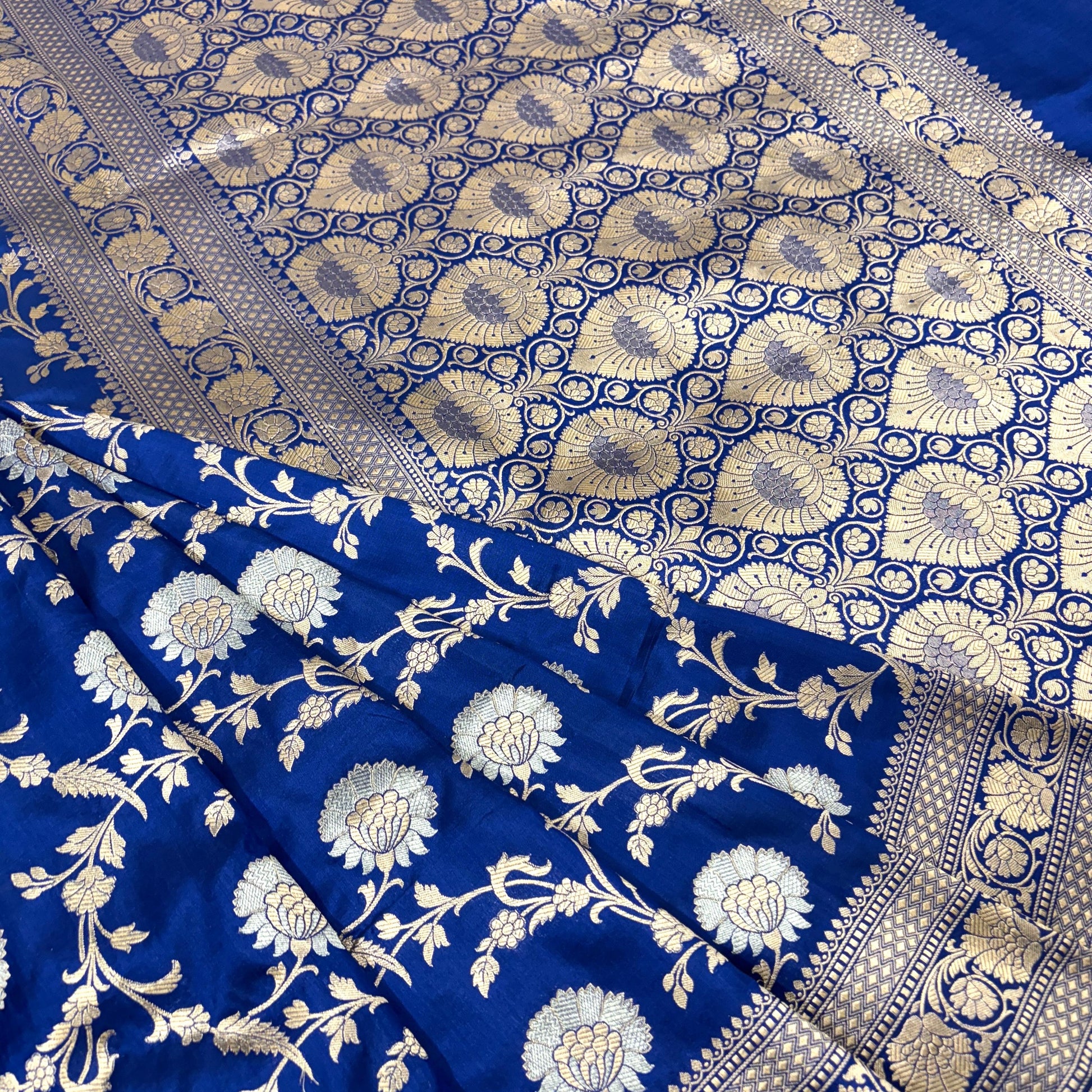 Step into timeless grandeur with this exquisite Banarasi Vintage Revival Saree, handwoven in pure Katan silk.
