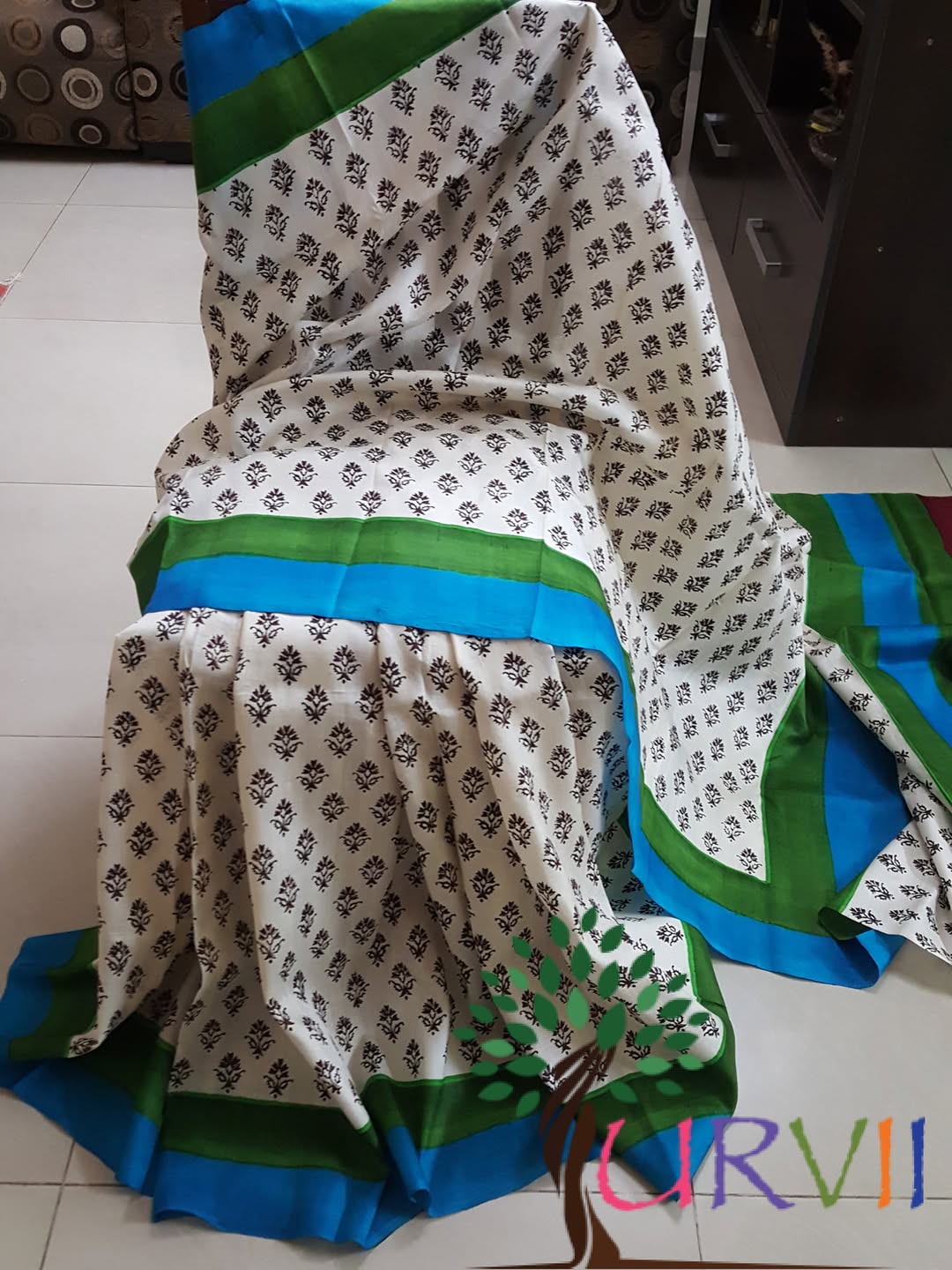 Printed pure silk saree 3 ply in dark pink base color . Running BP