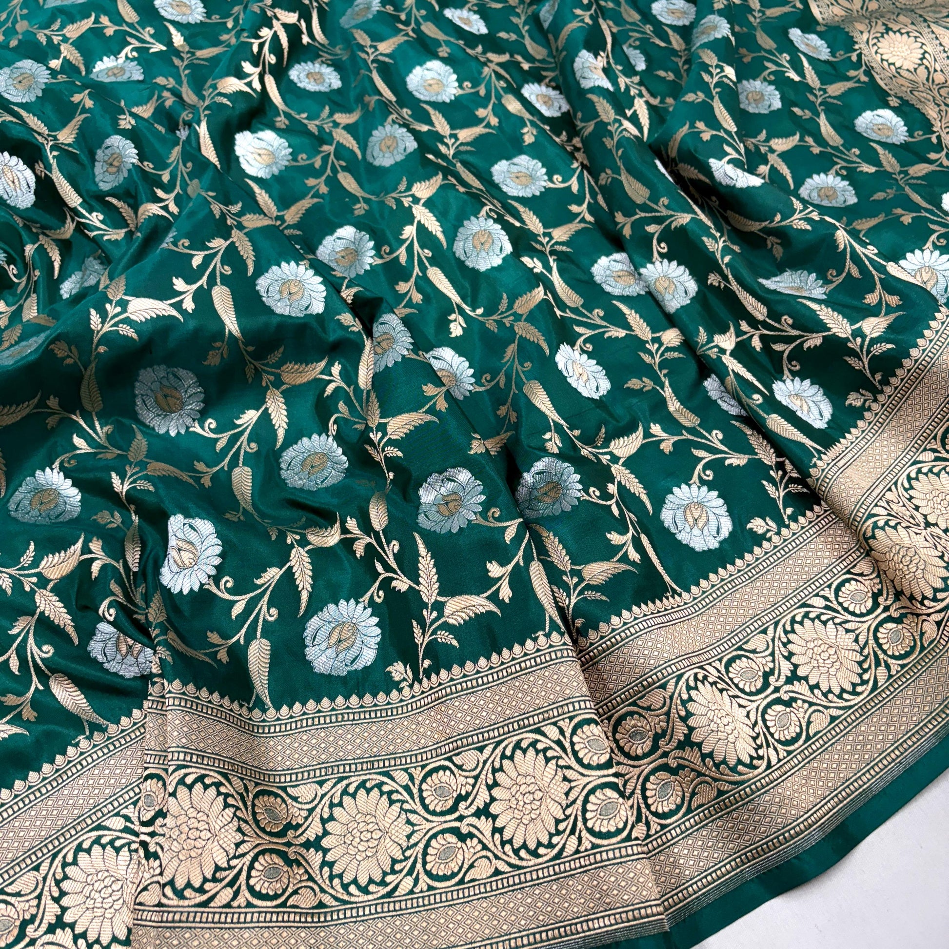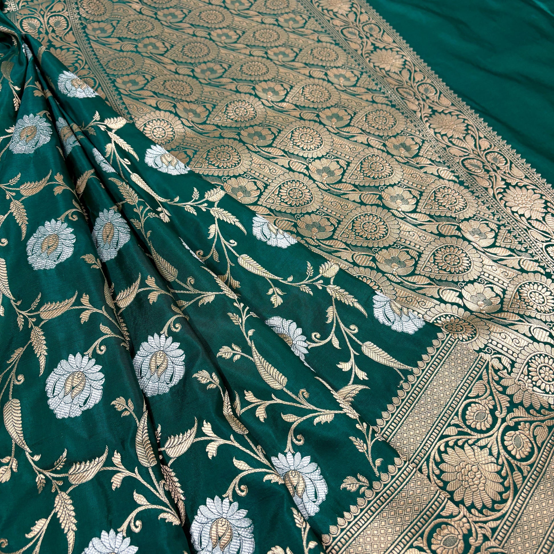 Dark green vintage Banarasi silk saree